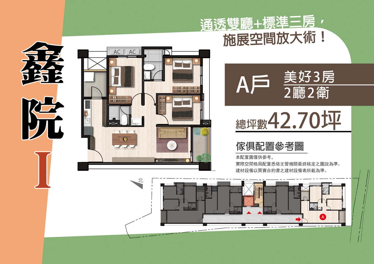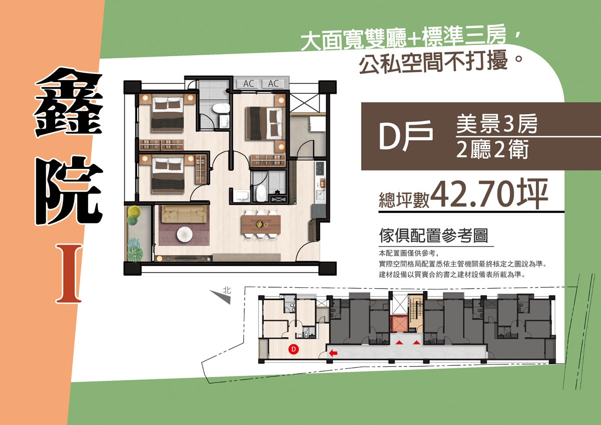 格局規劃:二房(29.86坪)、三房(42.7坪)