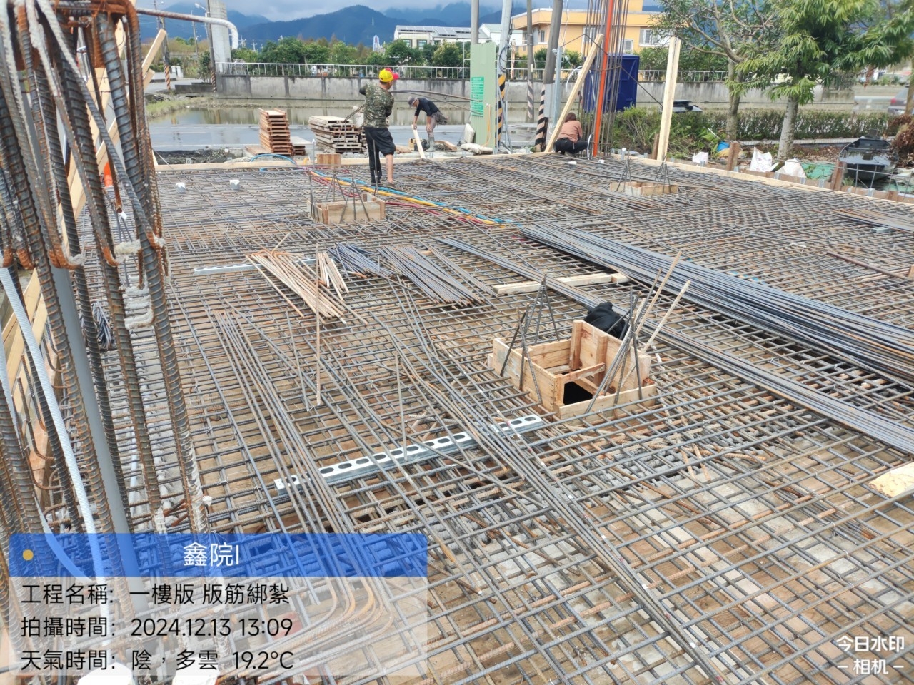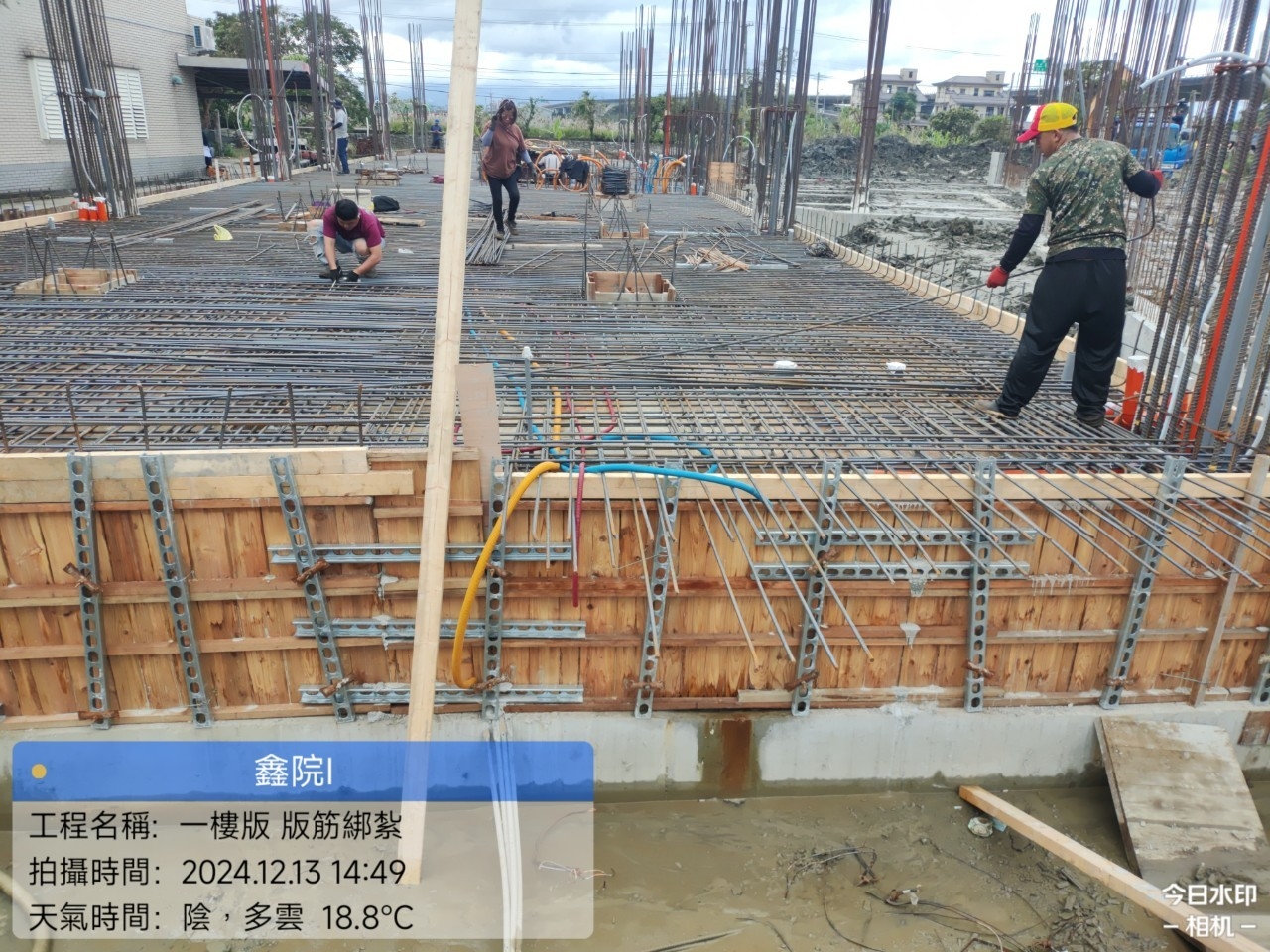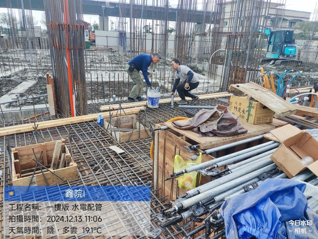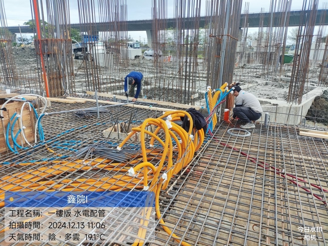 鑫院1_1樓版 版筋綁紮及1樓版水電配管